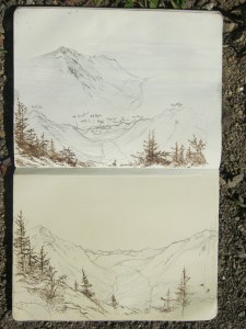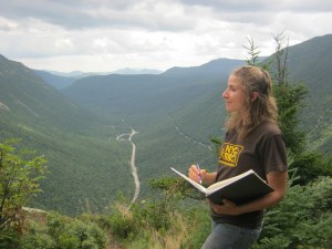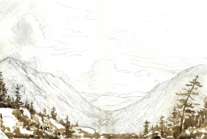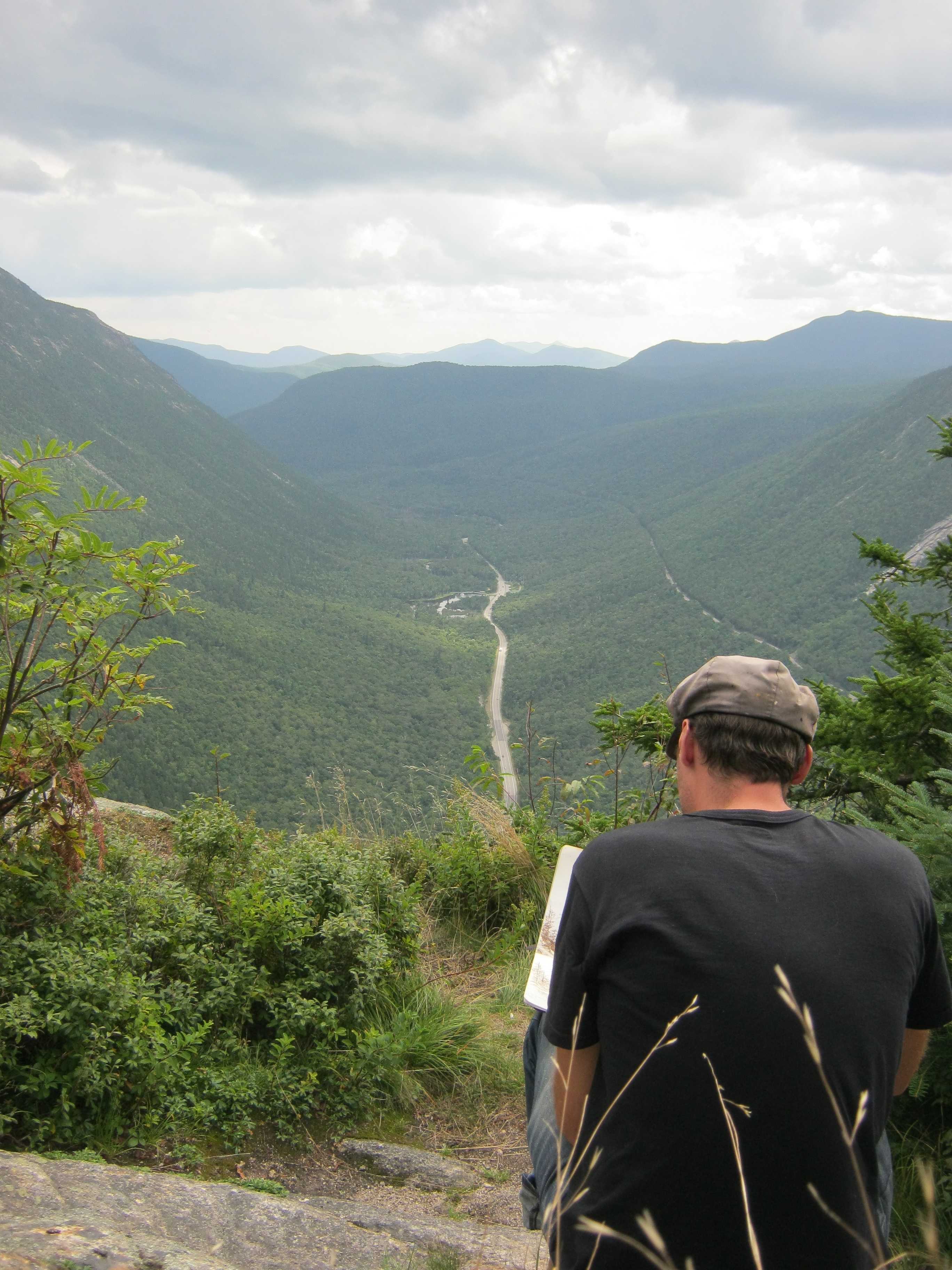 For example in the two paintings above, both depict the same mountains (North Carter and Imp, in NH), but the figure in both of them is used in different ways. The painting on top has more a feeling intimacy, gazing at the view from under the bow of a tree. Where as in the painting below, the figure is much smaller which gives the mountain and the whole space more a feeling of grandeur.
